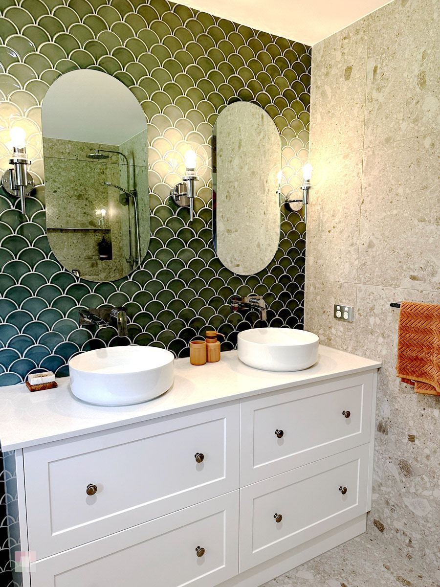 It was with pleasure that we were engaged to assist our neighbours with their multi space renovation, consisting of kitchen, laundry, two bathrooms and dining space. Our clients and wonderful neighbours wanted to enjoy their retirement in a light filled, dreamy space. We remained sympathetic to the home’s origin and surroundings, allowing ourselves to be inspired by the country charm and a light and bright finish. The selections component of the project was full of fun and our clients were open to interesting and beautiful finishes found in the bench tops, tiles and upholstery. This project was extra special for us and to watch our clients and my own children enjoy the finished spaces is the icing on one of the many perfectly baked cakes from the oven.